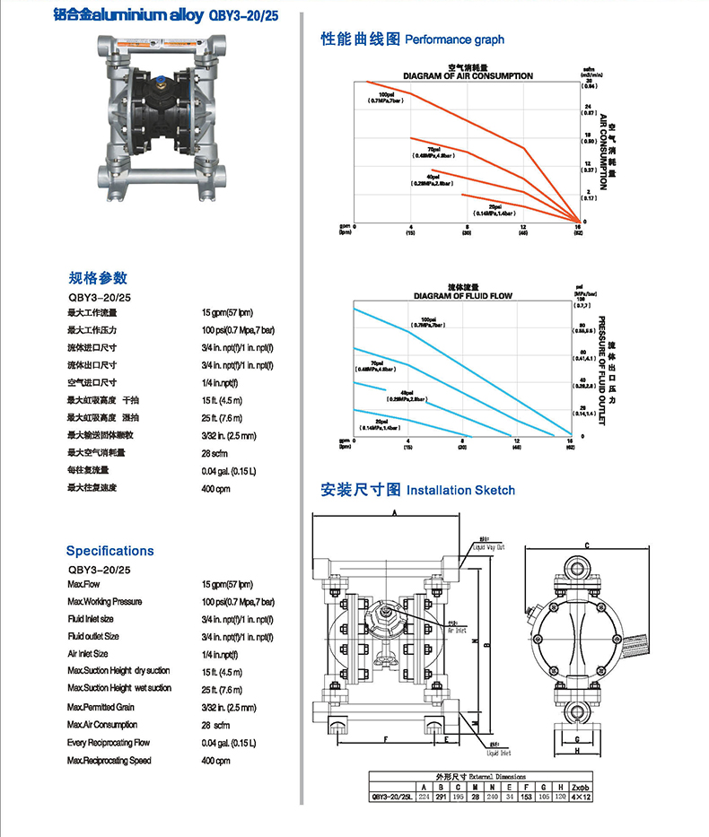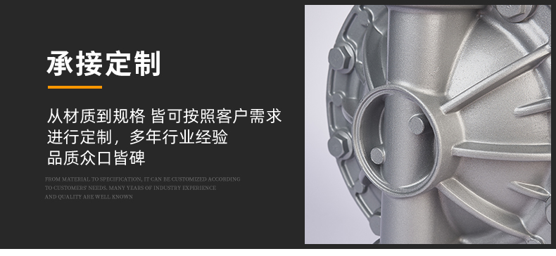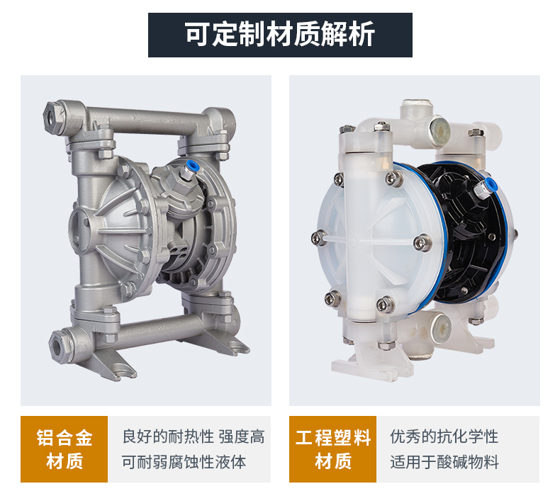 QBY氣動隔膜泵既能抽送流動的液體,又能輸送一些不易流動的介質,具有自吸泵、潛水泵、屏蔽泵、泥漿泵和雜質泵等輸送機械的好多優點。QBY-50鋁合金氣動隔膜泵是一種新型輸送機械,是目前國內新穎的一種泵類。采用壓縮空氣為動力源,對于各種腐蝕性液體,帶顆粒的液體,高粘度、易揮發、易燃、劇毒的液體,均能予以抽光吸盡。